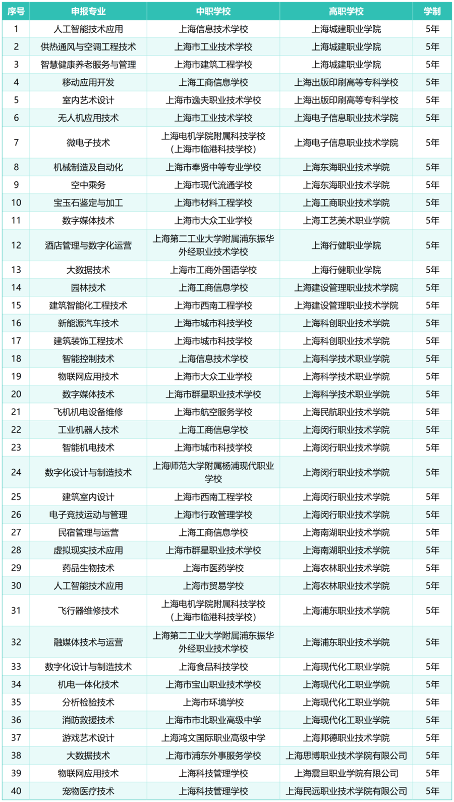 上海2026年增设的40个中高贯通专业点,涉及20个高职院校,专业包含大数据技术、室内艺术设计、数字媒体技术、民俗管理与运营、飞行器维修技术、融媒体技术与运营等。