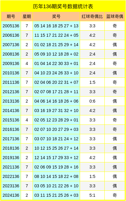 红五球:在历史同期开奖中分布在18-31区间,其中号码奇偶比为9:10,最近5年开奖中号码奇偶比为3:2,奇数号码表现活跃,今年第136期看好奇数号码走热,预测将会开出21。